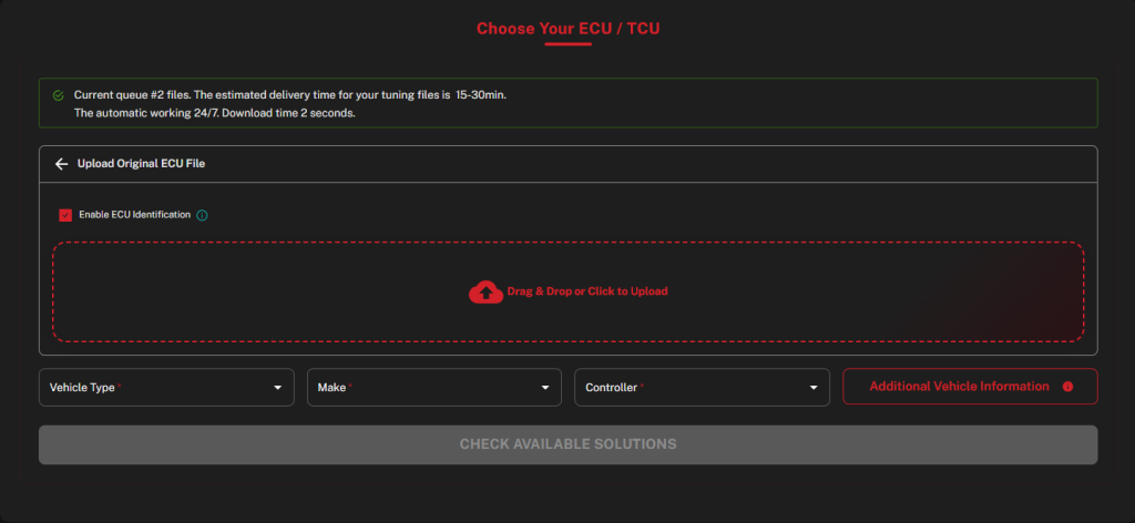 If we have your desired solutions already in our databse, you will get your tunefile in 2 seconds ready to download. If not our technicans will manually create the solutions and implement it to our automation.