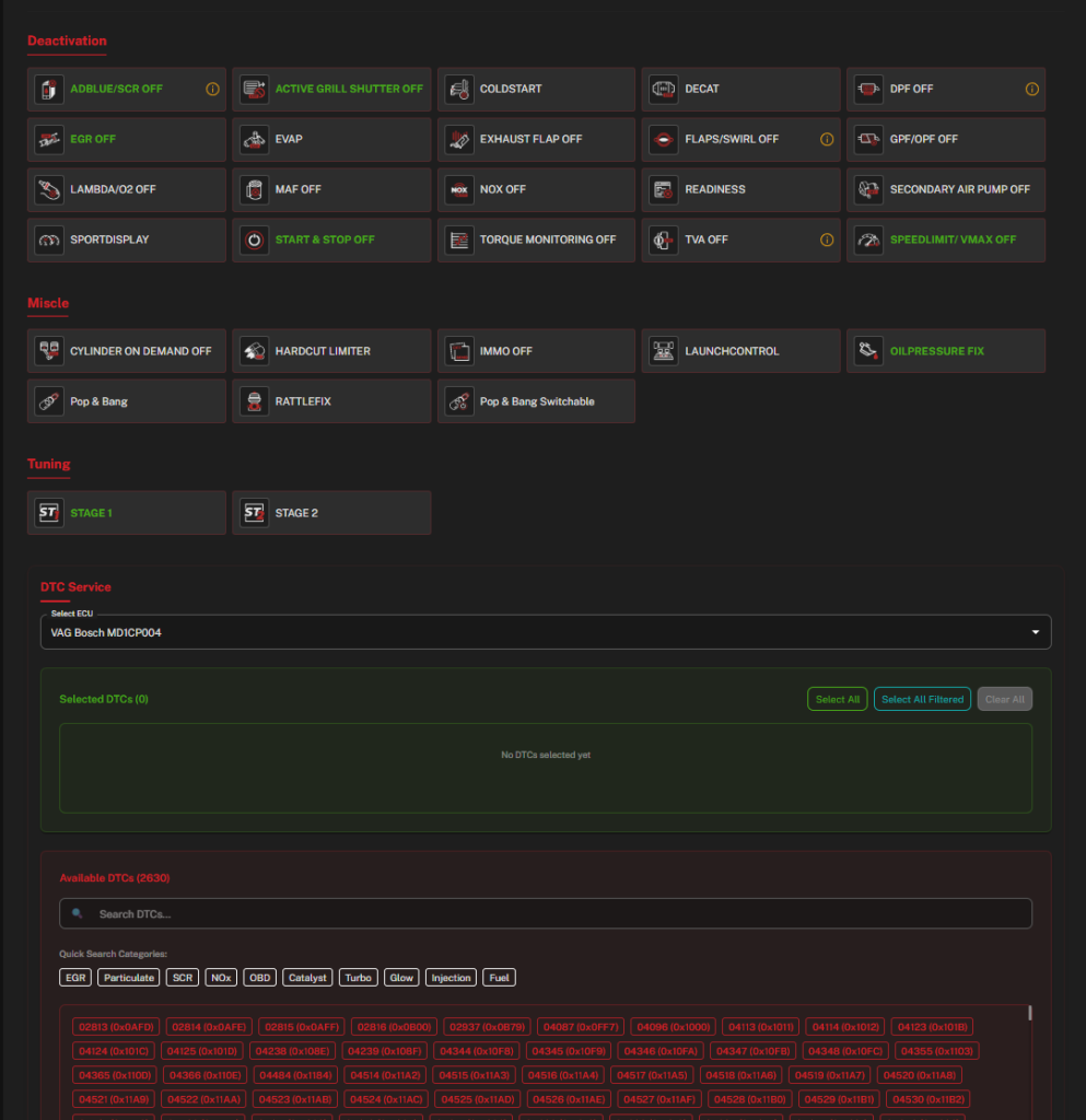 Check all DTC error codes in our database and only deactivate those that you need for your tuning file.